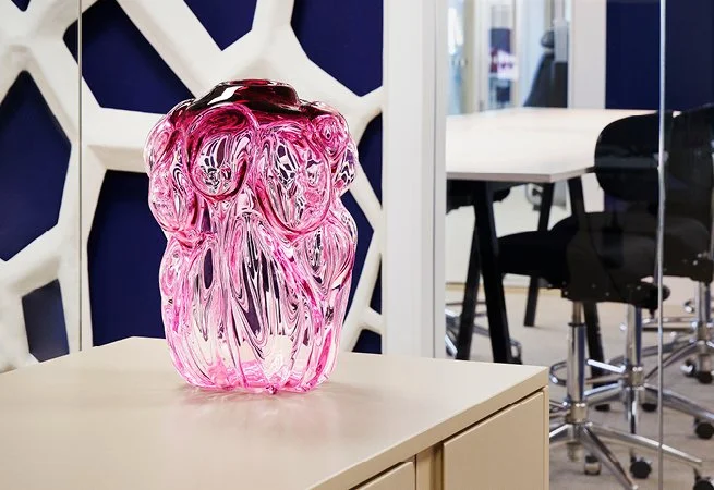 Because art doesn't only affect how a room looks — but how it is used. Sunny describes how the presence of a glass work in the lobby changes the behaviour of people moving through it. The pace slows slightly. Movements become more considered. An intuitive respect for the space emerges. Through feeling.